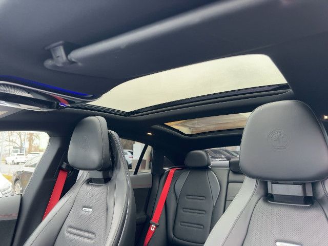 Ihr Interieur lebt pure Dynamik. Das unten abgeflachte AMG Performance Lenkrad in Leder Nappa liegt griffig in der Hand, während hochwertige Sportsitze mit spezifischer Grafik und packenden Wangen perfekten Halt bieten. Rote Sicherheitsgurte setzen einen finalen prägenden Kontrast.