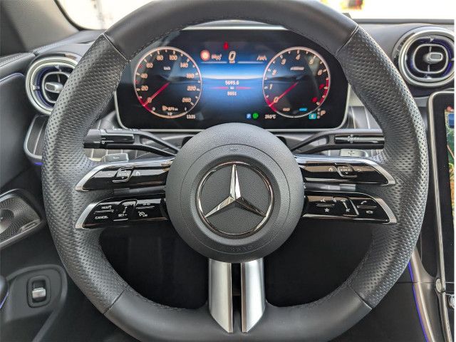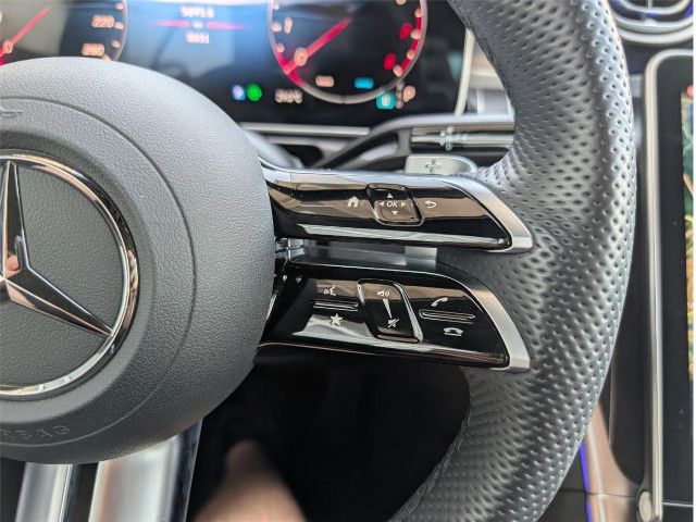 AMG Line InterieurHier sitzen Sie im Zentrum des Geschehens. Das unten abgeflachte Multifunktions-Sportlenkrad in Leder Nappa und die AMG Sportpedalanlage aus Edelstahl verkörpern pure Dynamik. Umgeben von Zierelementen in Metallstruktur und einer Instrumententafel in Nappaoptik, genießen Sie ein Ambiente, das Sie in den Mittelpunkt rückt.