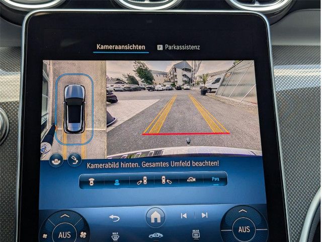 Park-Paket mit 360°-KameraDer Aktive Park-Assistent mit PARKTRONIC und 360°-Kamera erkennt freie Parklücken sowie markierte Parkplätze im Vorüberfahren. Nach der Parkplatzauswahl können Sie dank dynamischer Visualisierung und akustischer Rückmeldung souverän einparken – oder assistiert einparken lassen.