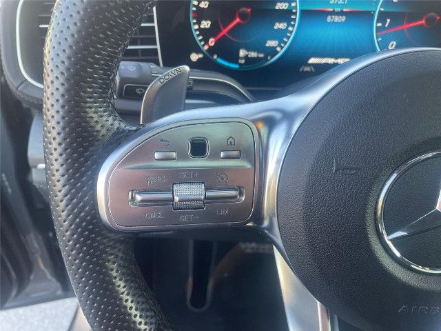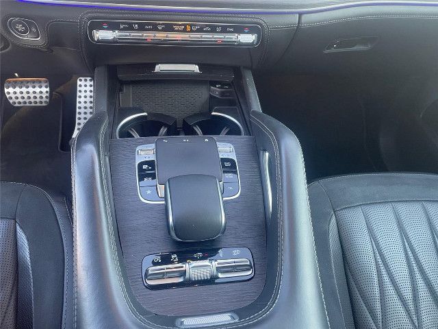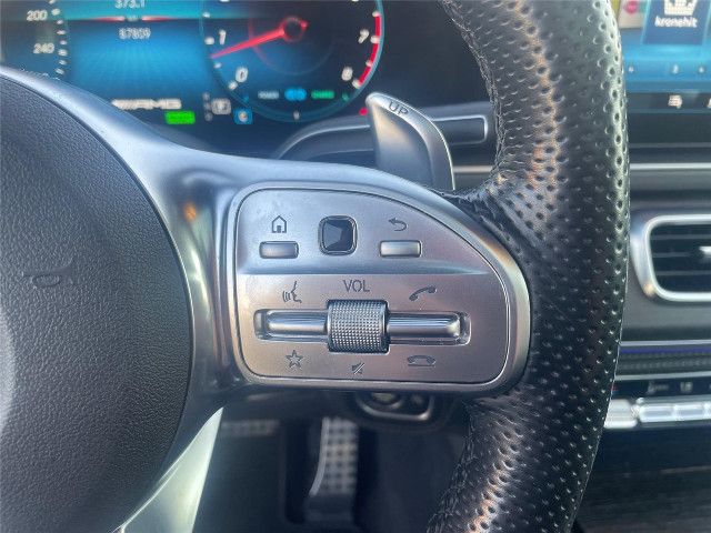 Dieses AMG Lenkrad ist durchgängig in edlem Nappaleder ausgeführt und erhält eine Perforation im Griffbereich. Die AMG typisch abgeflachte Form stammt aus dem Motorsport und betont die Sportlichkeit des Cockpits. Ergonomisch positionierte Touch-Control Buttons bieten intuitiven Bedienkomfort und fördern ein fokussiertes Fahren.